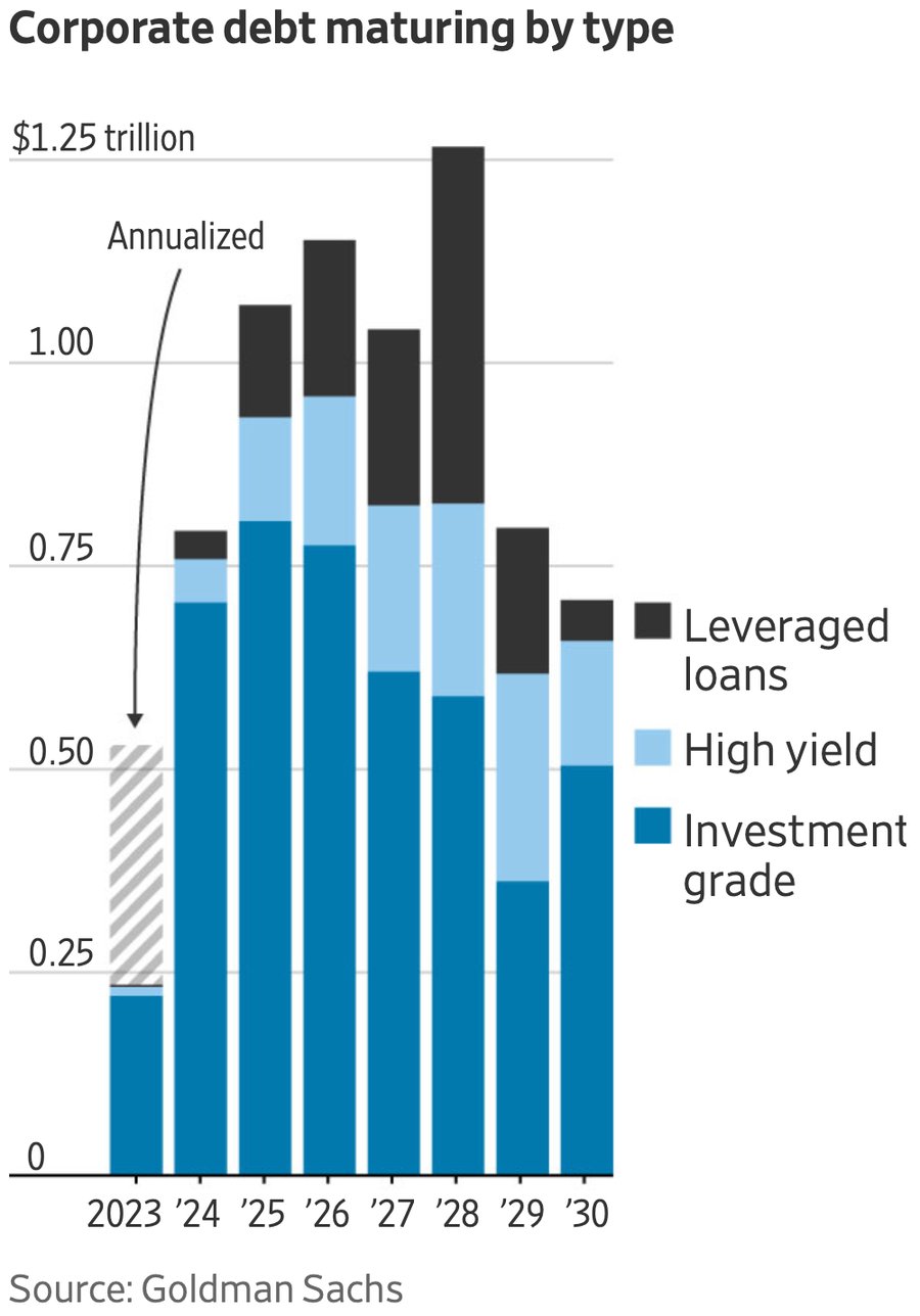 American firms have $600 billion in debt maturing this year. Between 2025 and 2028 over $1 trillion of corporate debt matures each year.